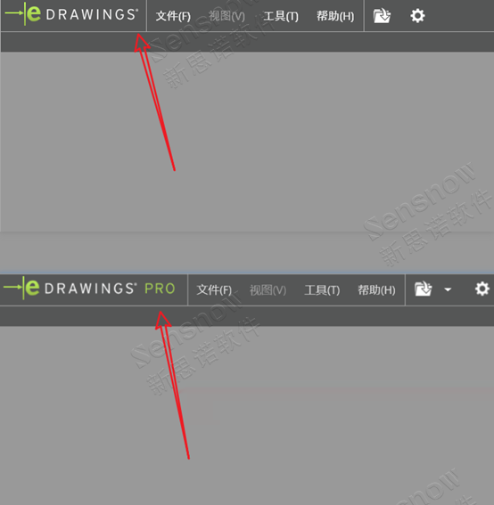 在 eDraiwngs 启动后观察左上角的图标存不存在 PRO 字样来判定:不存在 PRO 字样代表是标准版,存在 PRO 字样代表是专业版。