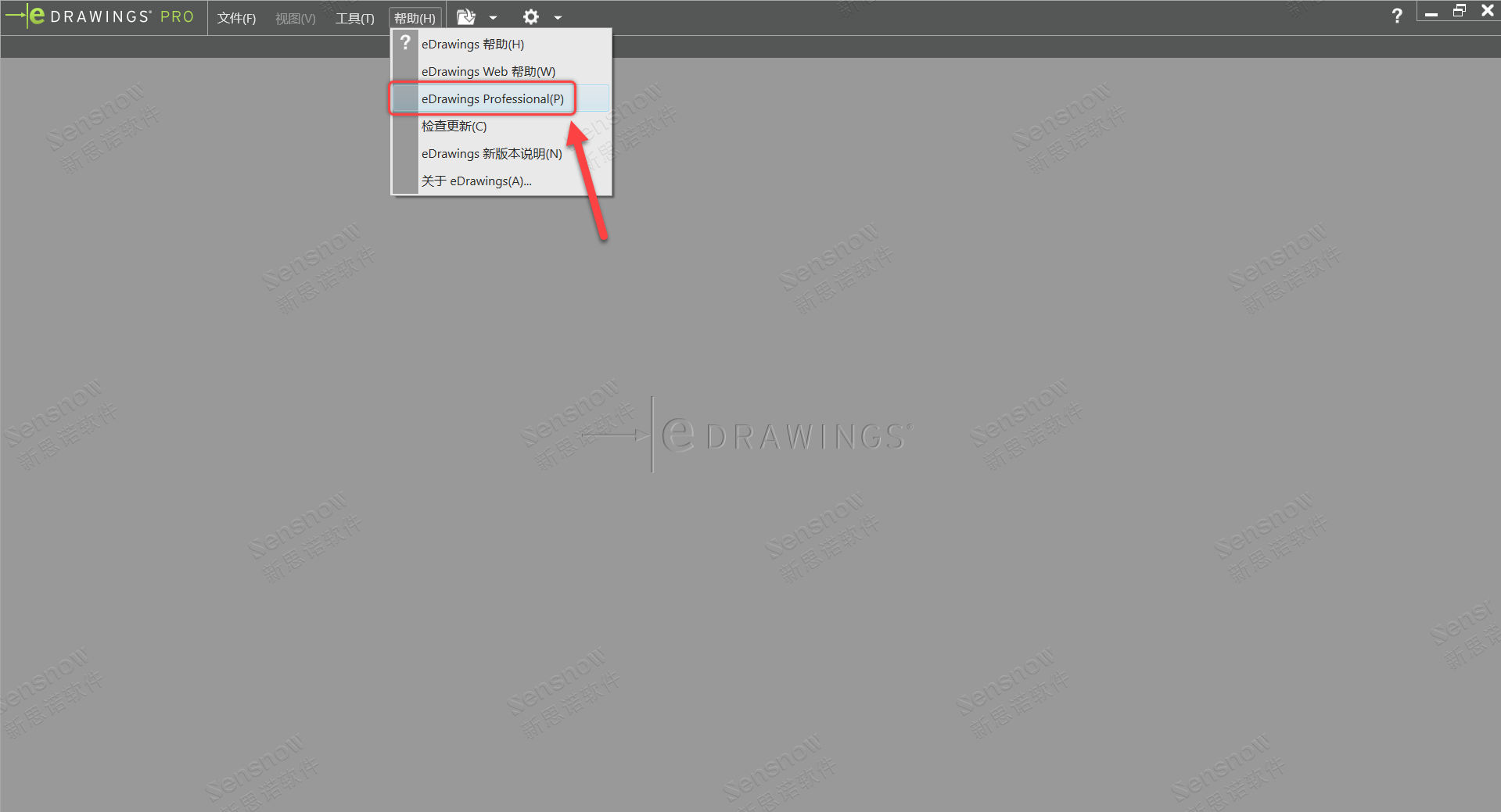 通过 eDraiwngs 中帮助下拉列表的 eDrawings Professional 显示来判定:此时,标准版的许可码为空,而专业版是存在许可码的。