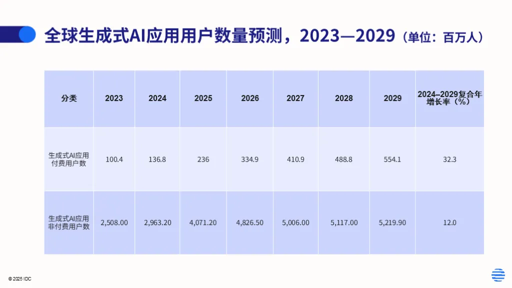 近年来,生成式AI与智能体技术的迅猛发展正深刻重塑全球技术格局。根据IDC最新报告,生成式AI已从实验阶段转向规模化企业级部署,预计到2029年全球用户将突破57亿,亚太地区呈现加速增长态势。