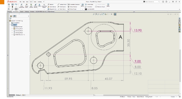 通过对连续尺寸使用共线尺寸标注来提升工程图的出详图速度,并通过遵循 ISO/ANSI 尺寸标注标准行为来避免过于密集。确保连续尺寸保持共线,即使空间有限。当尺寸文字和箭头重叠时,您可以选择最适合的选项。