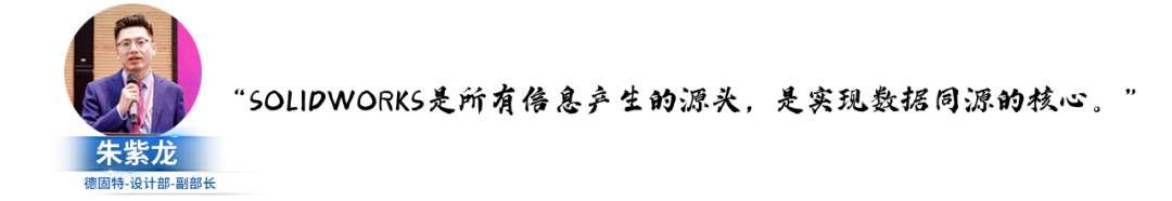 到2022年,SOLIDWORKS已经成为德固特日常设计的基本软件,覆盖率超过80%。SOLIDWORKS不仅是一个设计工具,它更是所有信息产生的源头,是实现数据同源的核心,为我们的设计工作提供了坚实的基础和便捷的平台。通过SOLIDWORKS,我能够将设计与制造高度整合,促进团队之间的紧密合作与无缝沟通,为项目的顺利进行提供坚实基础。