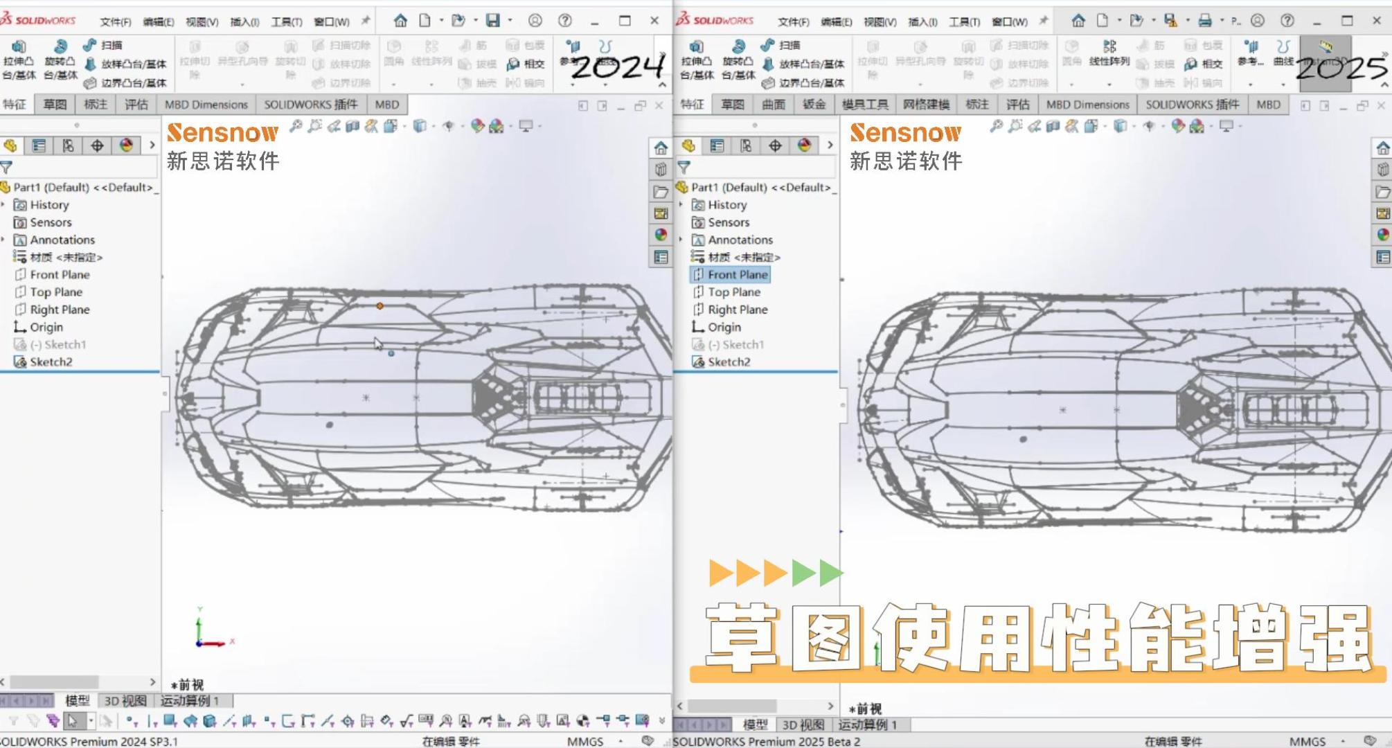 增强了包含大量样条曲线的草图使用性能,此项增强的目的是解决用户将 DWG 导入为超大草图,最终得到包含数千条样条曲线的草图情形。