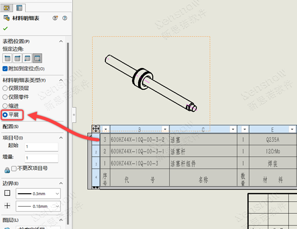 在 SOLIDWORKS 2025 SP 1 版本中已经解决了这一难题,对于工程图图纸的 BOM 选项中新增加了一个“平展”选项。